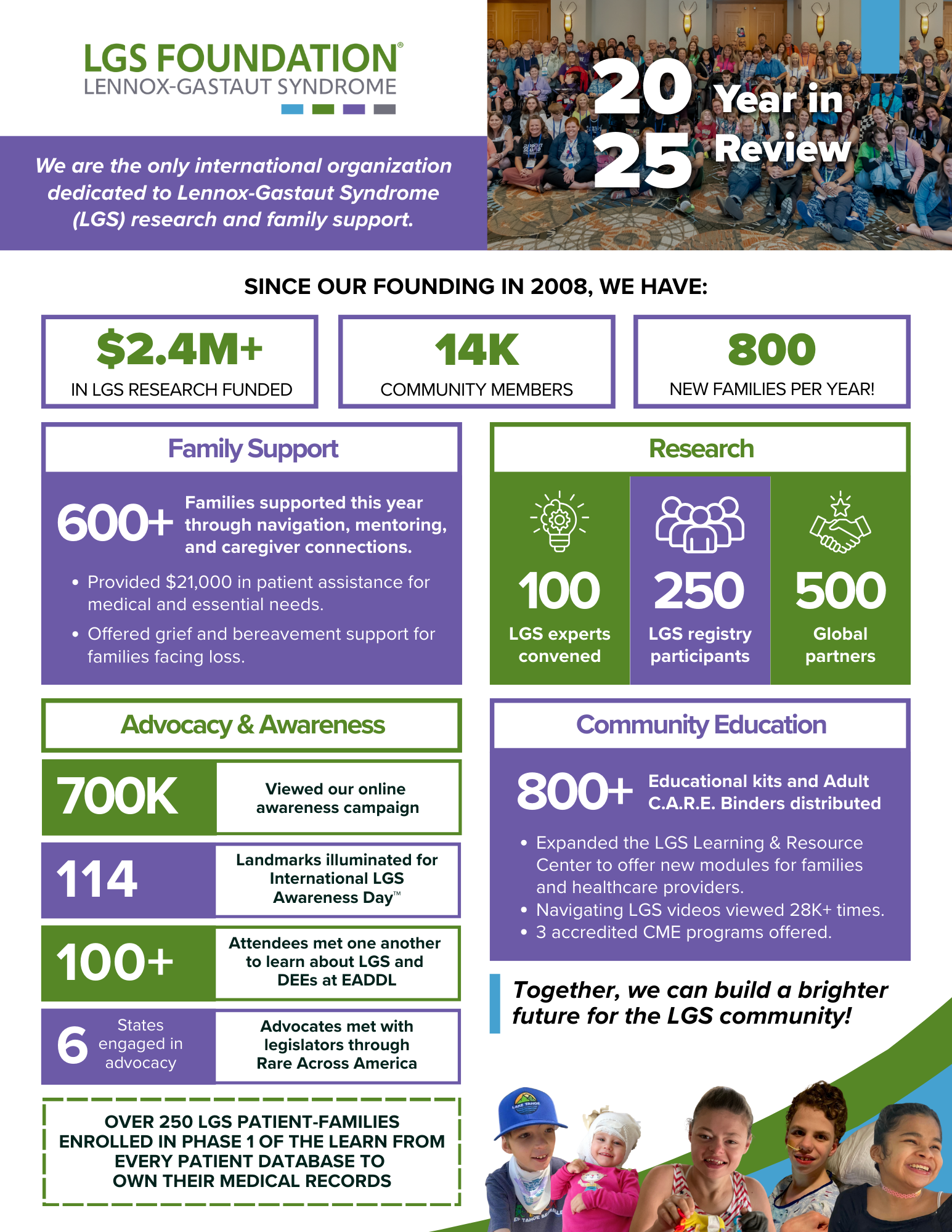 - The LGS Foundation hosted the 8th International LGS Family & Professional Conference, bringing together over 300 community members and medical professionals for three days of education, science, and community building.